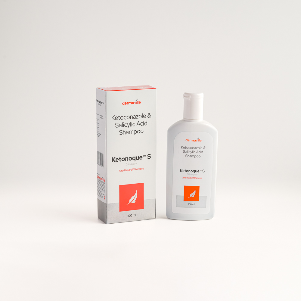 Our next solution is Dermaville’s Ketonoque S Shampoo. It is a solution, composed of ketoconazole and salicylic acid, highly effective for treating scalp conditions due to flakes and excessive oil. The shampoo works as a keratolytic agent, which works by removing dead skin cells from the scalp. Salicylic Acid gently exfoliates the scalp, removing the flakes. Resulting in promoting scalp conditions.